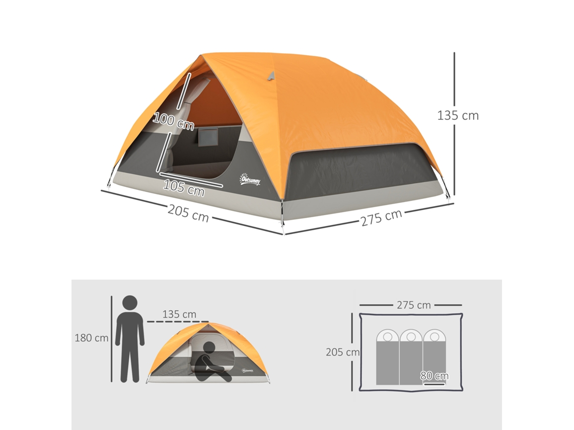 Outsunny Tenda de Campismo Poliéster 205x275x135cm 2-3 Pessoas